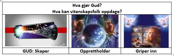 å knytte det sammen med en enorm eksplosjon (Big Bang?) blir misvisende. Det en livssynsavdeling kunne formidle, er vel det samme som Jehovas vitner formidler og kirken tradisjonelt har gjort, at noen står bak denne eksplosjonen. Herav den falske motsetningen (dikotomien). Det er mer sannsynlig og krever mindre tro at Noen står bak jorda og verden, enn at ingen gjør det -kalam-argument. Spesielt om de hadde giddet sjekke den ekstreme Fininnstillingen som kreves for karbonbasert liv -her.